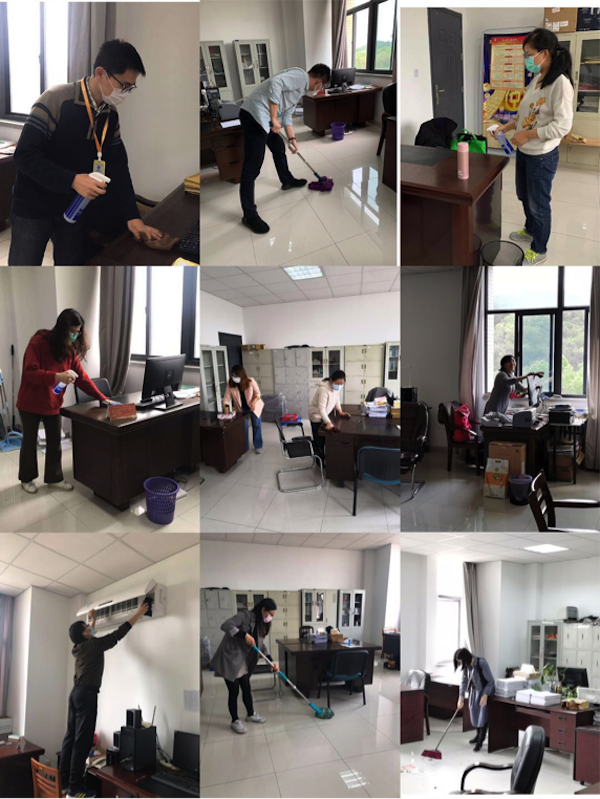 冰球突破mg正规官网党委在寒假期间用疫情防控党费专款集中购置了75%酒精、84消毒液、一次性手套等卫消防护物资,开学时向各系、办统一分发。党员在支部书记的带领下对办公环境和空调系统进行彻底清洁,对座椅、办公桌、电脑等物体表面进行预防性消毒处理,将所有场所开窗通风,确保整体操作的科学性、规范性和有效性。本次集中打扫之后,冰球突破mg正规官网各党支部将以“支部负责制”形式建立各系部、办公室等办公场所卫生管理长效机制,保持环境卫生,杜绝死角盲区,定期全面消杀,保持办公场所的优良环境。