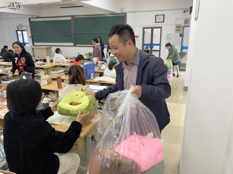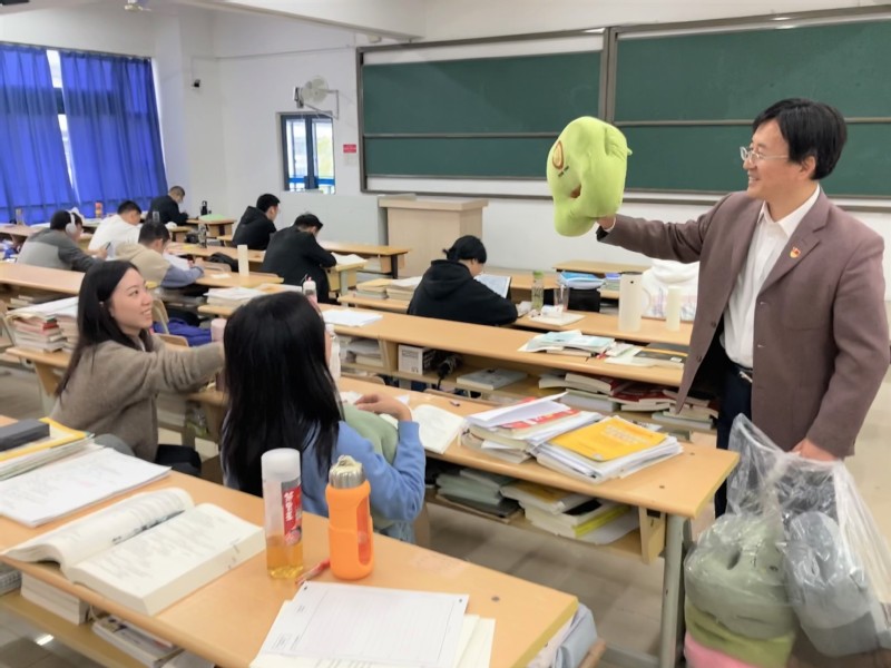 2020年10月20日下午,冰球突破mg正规官网院长岳中刚、院党委副书记董军、副院长杨小军到考研教室走访慰问学生,将精心准备的趴睡枕送到了考研学子的手中。
