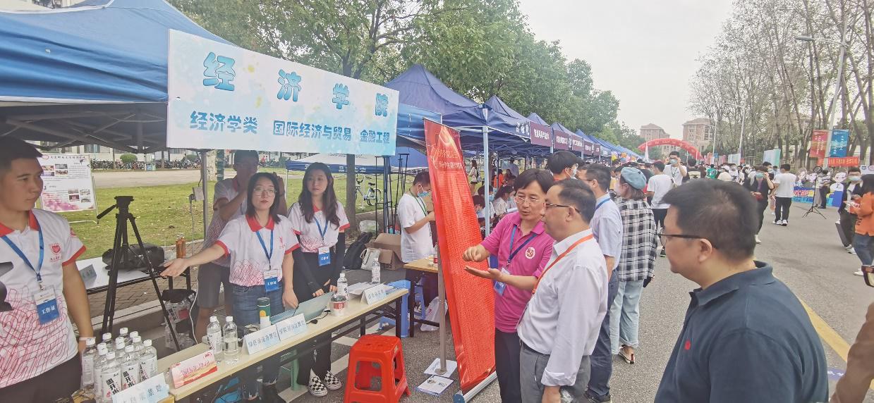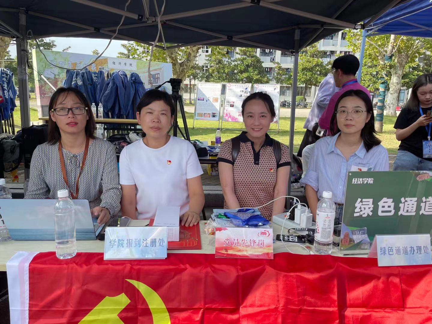 9日,校党委书记刘陈,校长叶美兰,校党委副书记王国平,校党委常委、副校长蒋国平,校党委常委、纪委书记、省监委派驻冰球突破mg正规官网监察专员李子全,校党委常委、副校长荆晅和学校关心下一代工作委员会朱永平主任一行走访了经院迎新工作现场,指导学院开展迎新工作。院党委副书记兼副院长董军向校领导介绍了冰球官网迎新工作进展、相关政策落实以及新生报到情况。校领导与现场工作人员亲切交谈,了解迎新工作的相关细节,与新生热情交流,鼓励他们尽早适应大学生活、做好学习生涯规划,努力实现自己的人生目标。