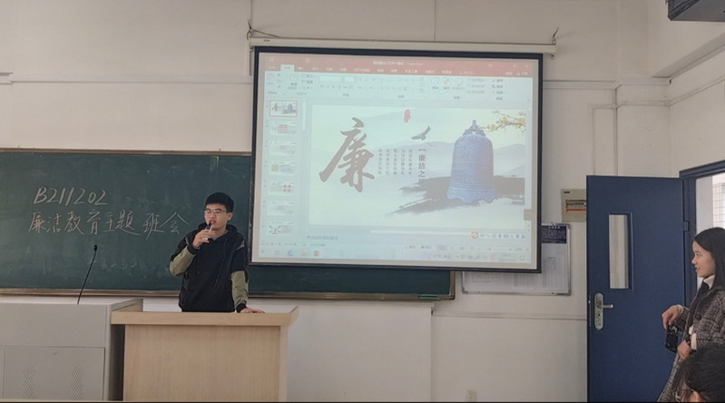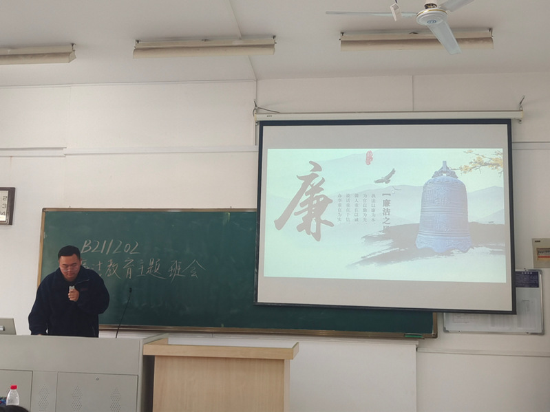 为全面贯彻落实党的教育方针,推进廉洁素质教育,加强和改进学生对于廉洁教育的理解,促进学生思想道德素质提升。冰球突破mg正规官网B211202班于2021年11月11日下午在教2-506教室举行了廉洁教育主题班会,班主任张雅淋老师应邀出席,B211202班全体同学参会。本次班会由班长柯见杭同学主持。