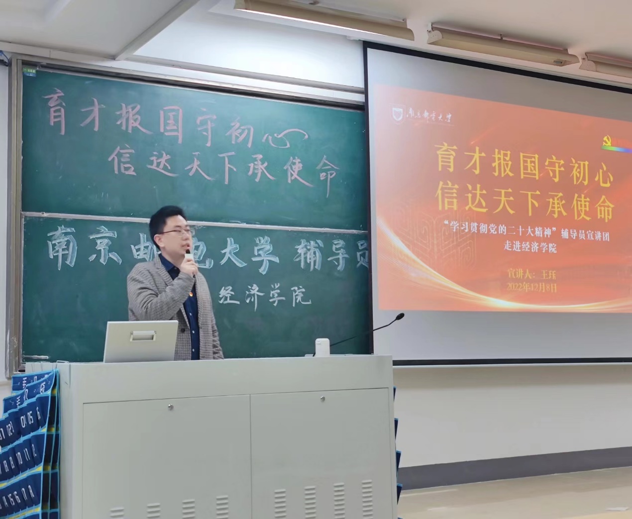 为深入学习领会和贯彻落实党的二十大精神,鼓舞广大青年学子为实现第二个百年奋斗目标而不懈努力,2022年12月8日下午,我校“学习贯彻党的二十大精神”辅导员宣讲团成员、冰球突破mg正规官网辅导员王珏老师开展了以“育才报国守初心,信达天下承使命”为主题的讲座。本次宣讲于线上线下同步进行。