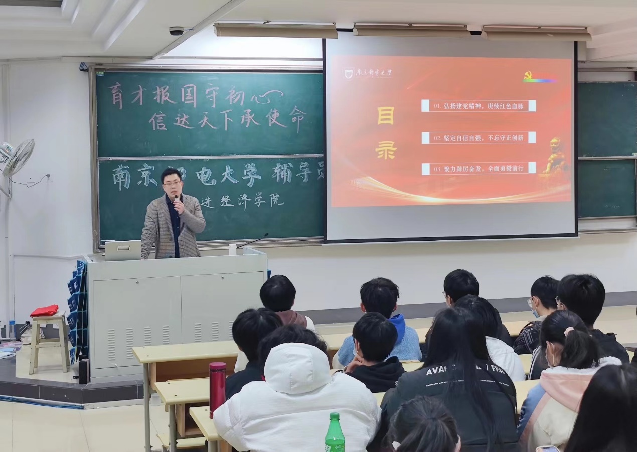 讲座以党的二十大报告为载体,王珏老师由三个分主题“弘扬建党精神·赓续红色血脉”、“坚定自信自强,不忘守正创新”和“聚力踔厉奋发,全面勇毅前行”展开,带领同学们回顾冰球突破mg正规官网80年发展历程,多维度、全方位地展现了一代代南邮人的矢志不渝跟党走,坚定不移谋复兴,更展示了南邮人不负时代,敢与担当的精神品质和始终秉持的“信达天下,自强不息”南邮精神。