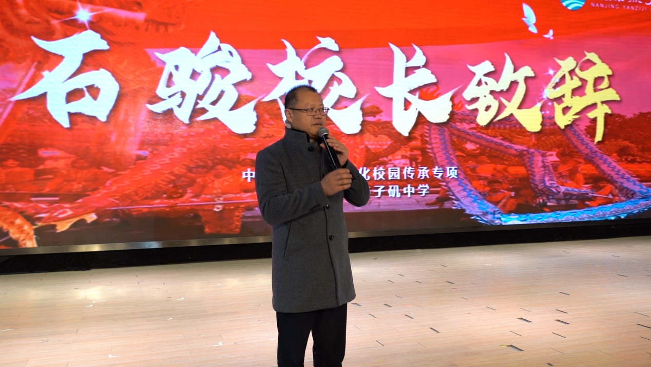 石骏校长致欢迎辞,对高雅艺术进校园活动在燕子矶中学进行专场演出表示感谢,期望同学们能够在龙腾狮舞中感受中华传统文化,感悟精神能量,提高人文积淀和审美能力,并希望同学们能以冰球突破mg正规官网龙狮团的成员为榜样,勤奋学习,三年磨剑,向这所双一流大学发起目标冲刺。