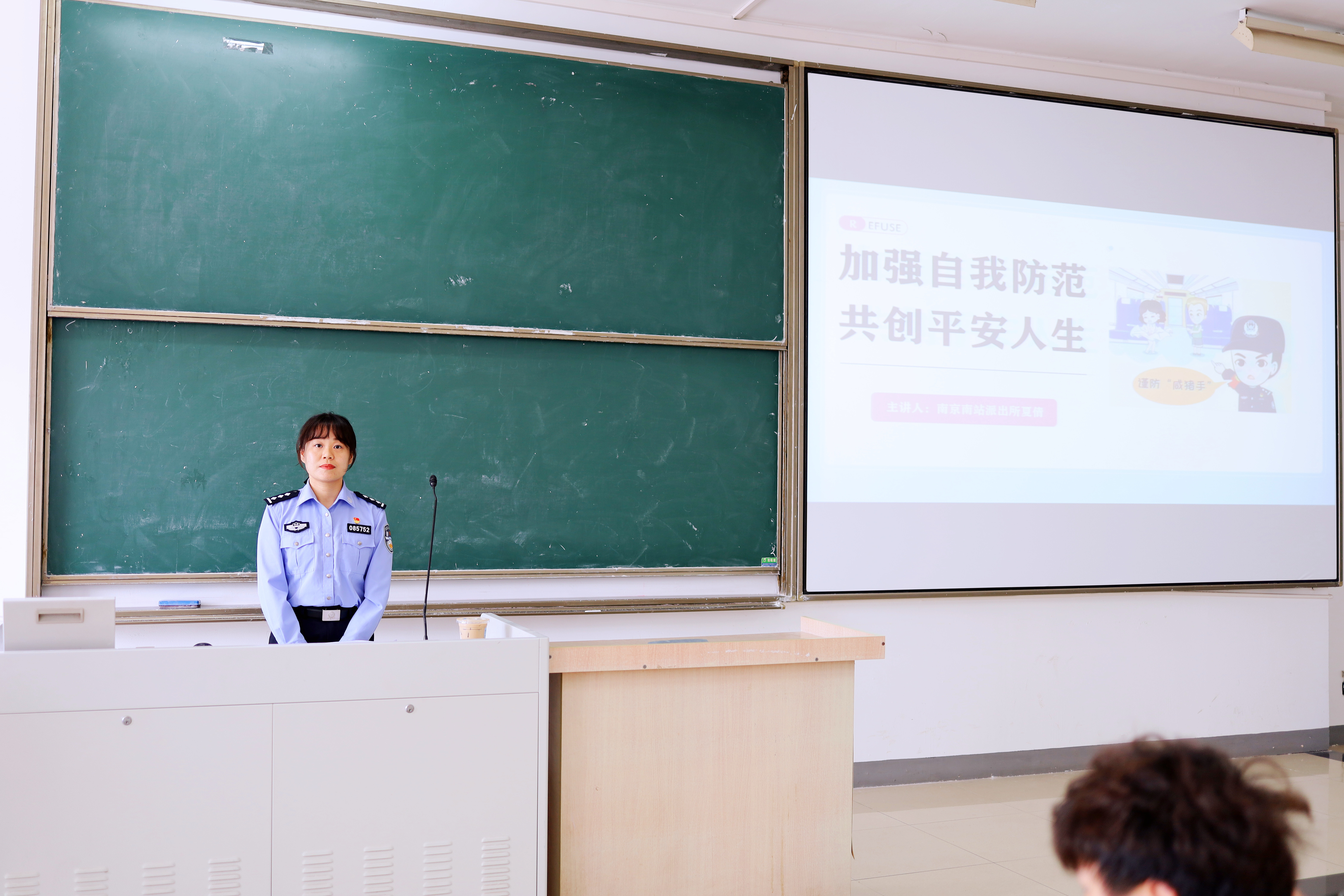 随后南京南站派出所三级警长夏倩为同学们做《加强自我防范,共创平安人生》主题报告。夏倩警长以近年来车站列车猥亵案件频发的问题为引,向同学们介绍了猥亵的定义,并指出打击猥亵违法行为依旧任重道远的现状。课程最后,夏倩警长结合实际案例向同学们介绍了遇到猥亵事件时的正确做法,如影像取证、及时寻求警方和工作人员的帮助等具体方法,号召同学们要提升自我防范意识,勇敢打击不法行为。