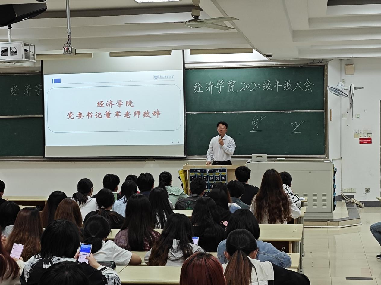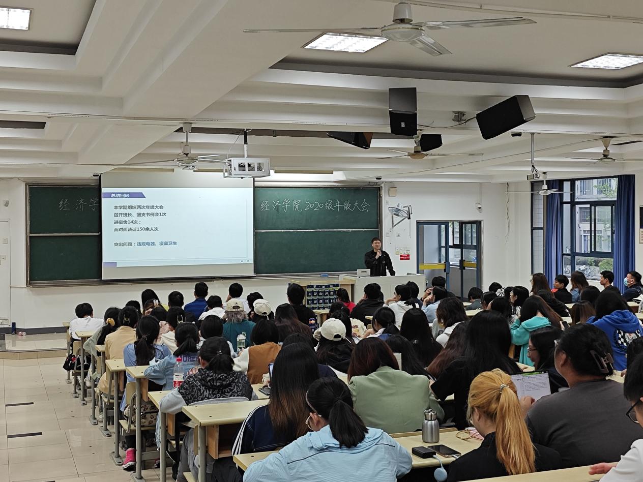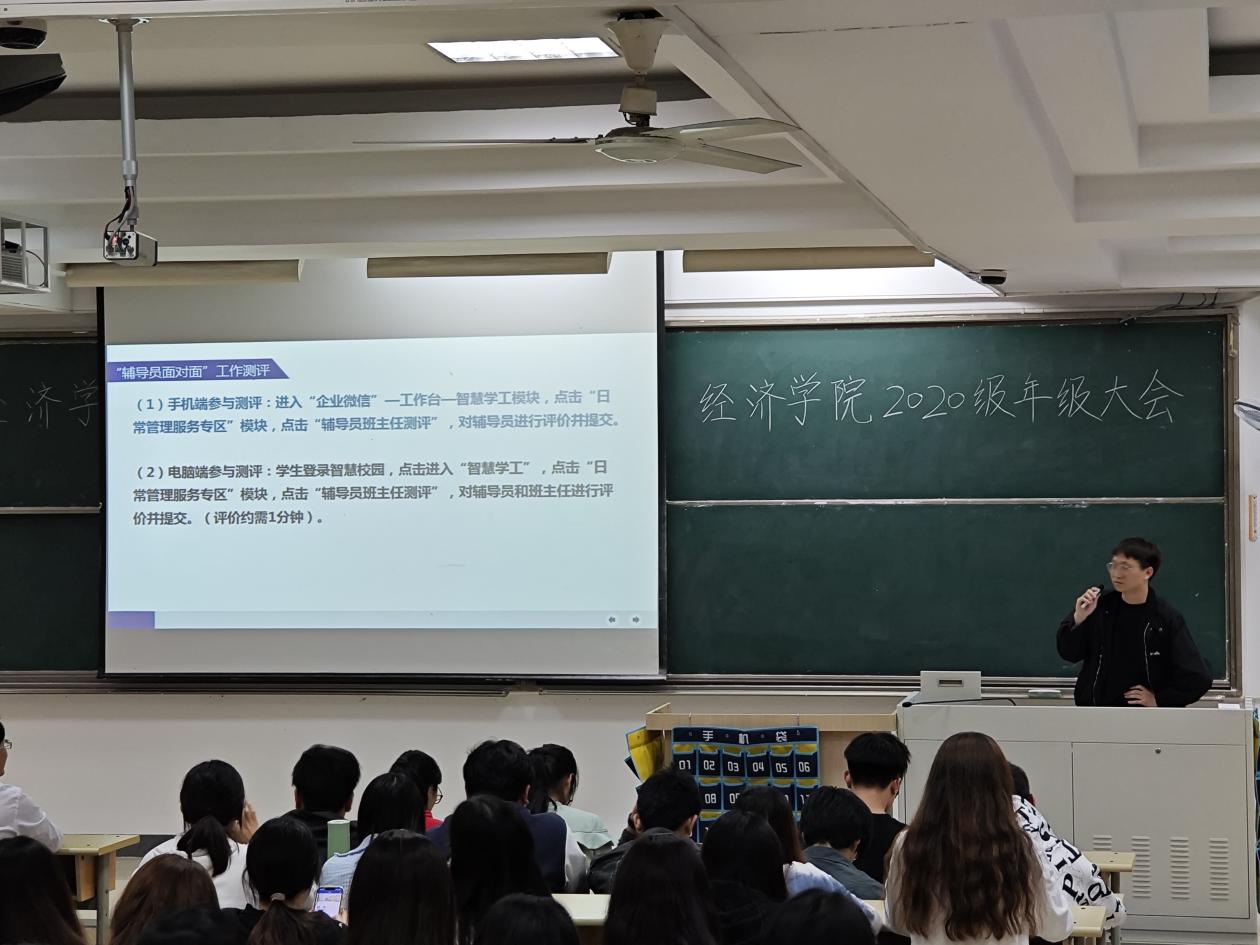 为进一步加强辅导员队伍建设,提升辅导员教育素质及学生工作质量,2023年6月5日冰球突破mg正规官网于教3-201召开了2020级本科生学期总结大会暨辅导员面对面测评会,冰球突破mg正规官网党委书记董军老师出席会议并发表讲话,大会由2020级辅导员周洪山老师主持,2020级全体本科生参会。