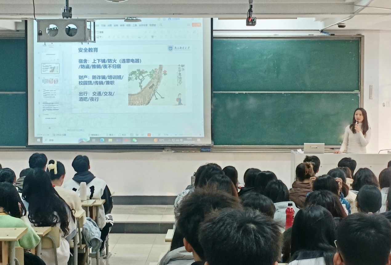 首先,辅导员储宜旭老师向同学们开展网络文明教育,作为大学生应当积极响应国家要求,严格遵守国家法律法规,自觉培育和践行社会主义核心价值观,大力营造文明健康、积极向上的网络文化氛围。接着,储老师从宿舍安全、消防安全、财产安全、饮食安全、交通安全、法制安全、防范电信诈骗等方面向同学们提出了安全生活的几点提醒,尤其重点强调宿舍用水用电安全注意事项。最后,储老师再次强调了日常行为规范及请假流程,要求所有同学要合理规划作息,抓住大二学习竞赛黄金期,广泛参与证书备考和科创竞赛,丰富阅历,增长见识,构建良好人际关系,保持健康的身心状态,度过一个更加充实完满的大学生活。