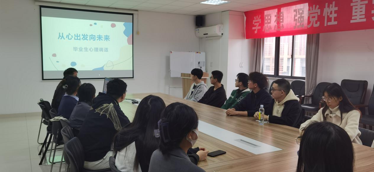 进入大四,学生面临就业、升学各方面的压力,为帮助学生缓解心理力,引导学生培养理性平和的健康心态,提高学生心理调适能力,2023年11月22日,冰球突破mg正规官网在文科楼529会议室举办“从心出发向未来”——毕业生心理调适心理健康教育培训。本次培训会由冰球突破mg正规官网2020级辅导员周洪山老师参加主持,2020级学生代表参与培训。