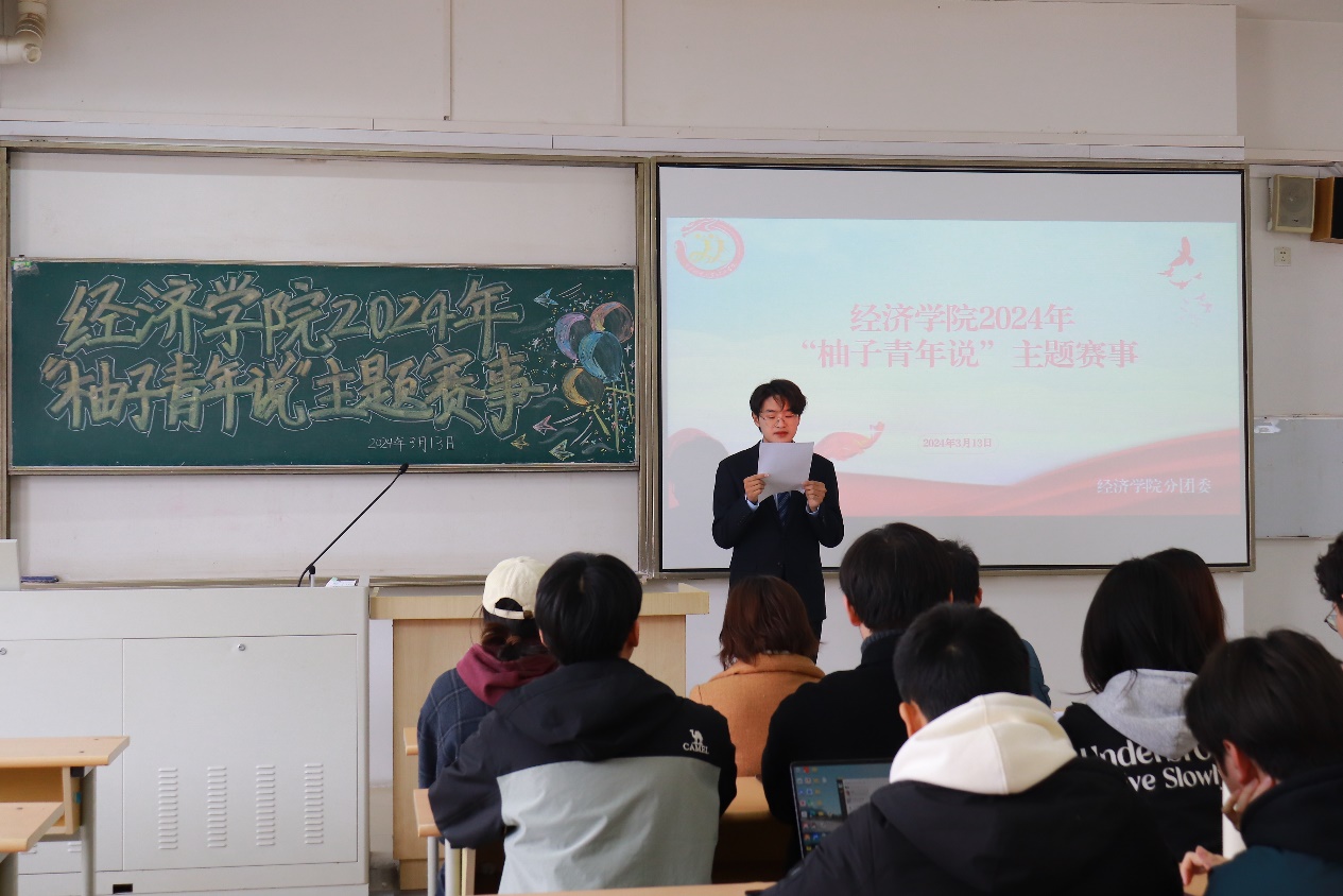 为深入学习贯彻党的二十大精神,用习近平新时代中国特色社会主义思想武装团员青年,3月13日,冰球突破mg正规官网举办了“柚子青年说”主题赛事。学院党委副书记、副院长吴迪老师,分团委书记尤波老师以及学院各学生社团组织主席团成员担任本次大赛评委。