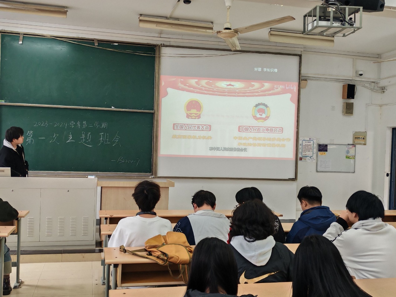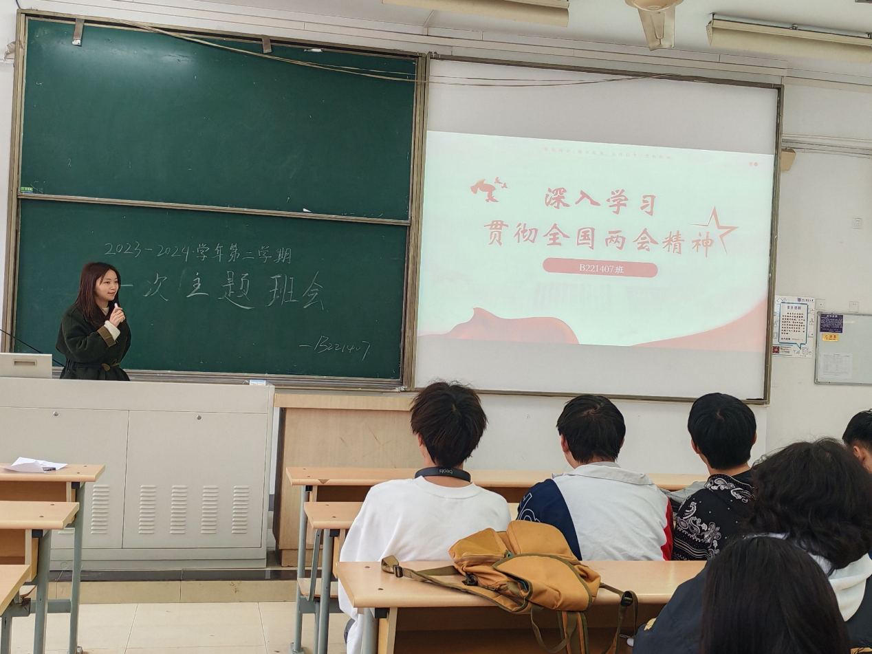 为营造良好的心理健康环境,增强学生心理调适能力,增强班级集体凝聚力和向心力,2024年3月28日下午,冰球突破mg正规官网B221407班于教3-204举办了新学期心理健康主题班会。辅导员储宜旭老师应邀出席,本次班会由7班班长施朝阳主持,7班全体同学参会。