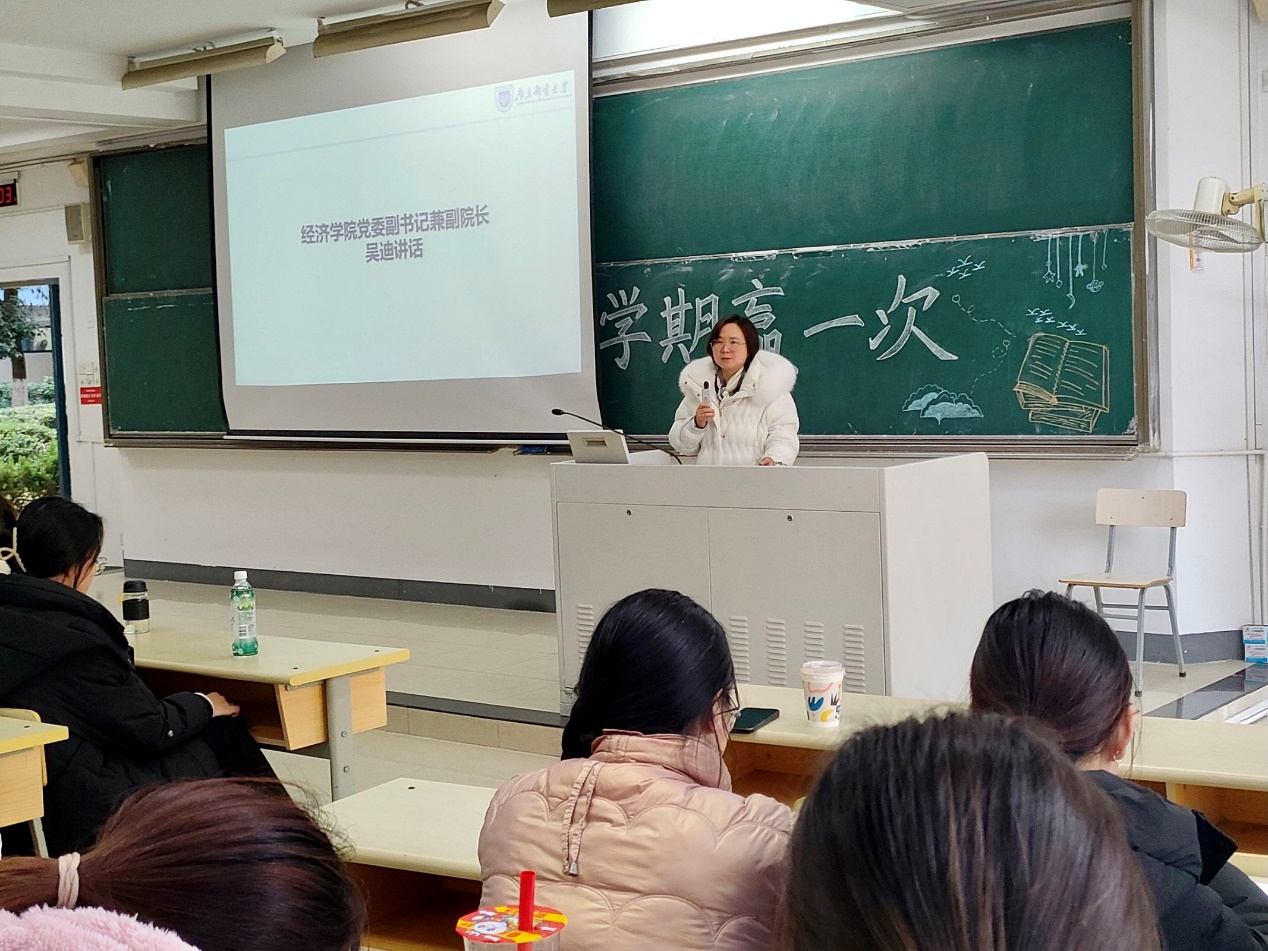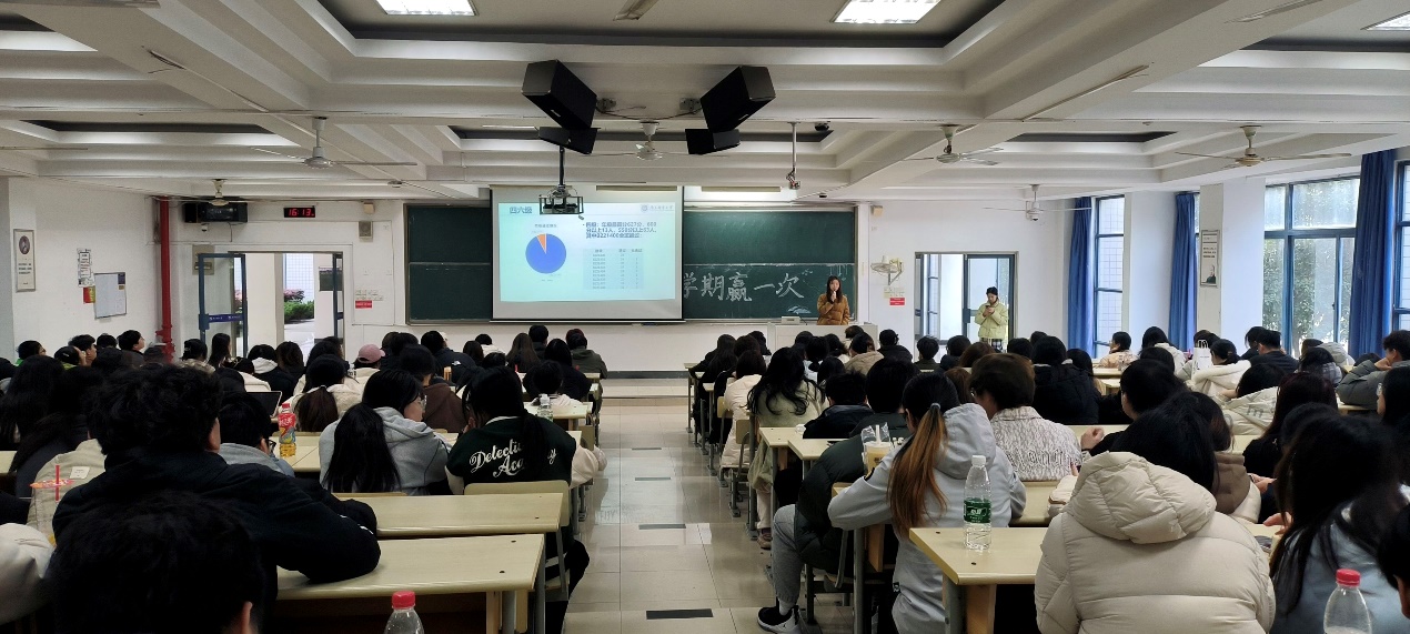 会议伊始,吴迪副书记就消防安全、反诈防骗、宿舍卫生、学风建设等方面进行了强调,叮嘱同学们要做好短期和长期规划,多探索适合自己的发展路径,充实地度过尤为关键的大二阶段。接着,储老师对上学期期末成绩、四六级通过情况进行了总结分析,并结合考研、保研、出国、就业等毕业去向具体讲解了相关政策和相应能力要求,强调要把握好大二学习竞赛黄金期,提早规划,以终为始,用简历填空法来不断磨练完善自身综合素质,为未来打下坚实基础。最后,储老师就日常安全、行为规范、违章电器等事项做了再次叮嘱和强调。