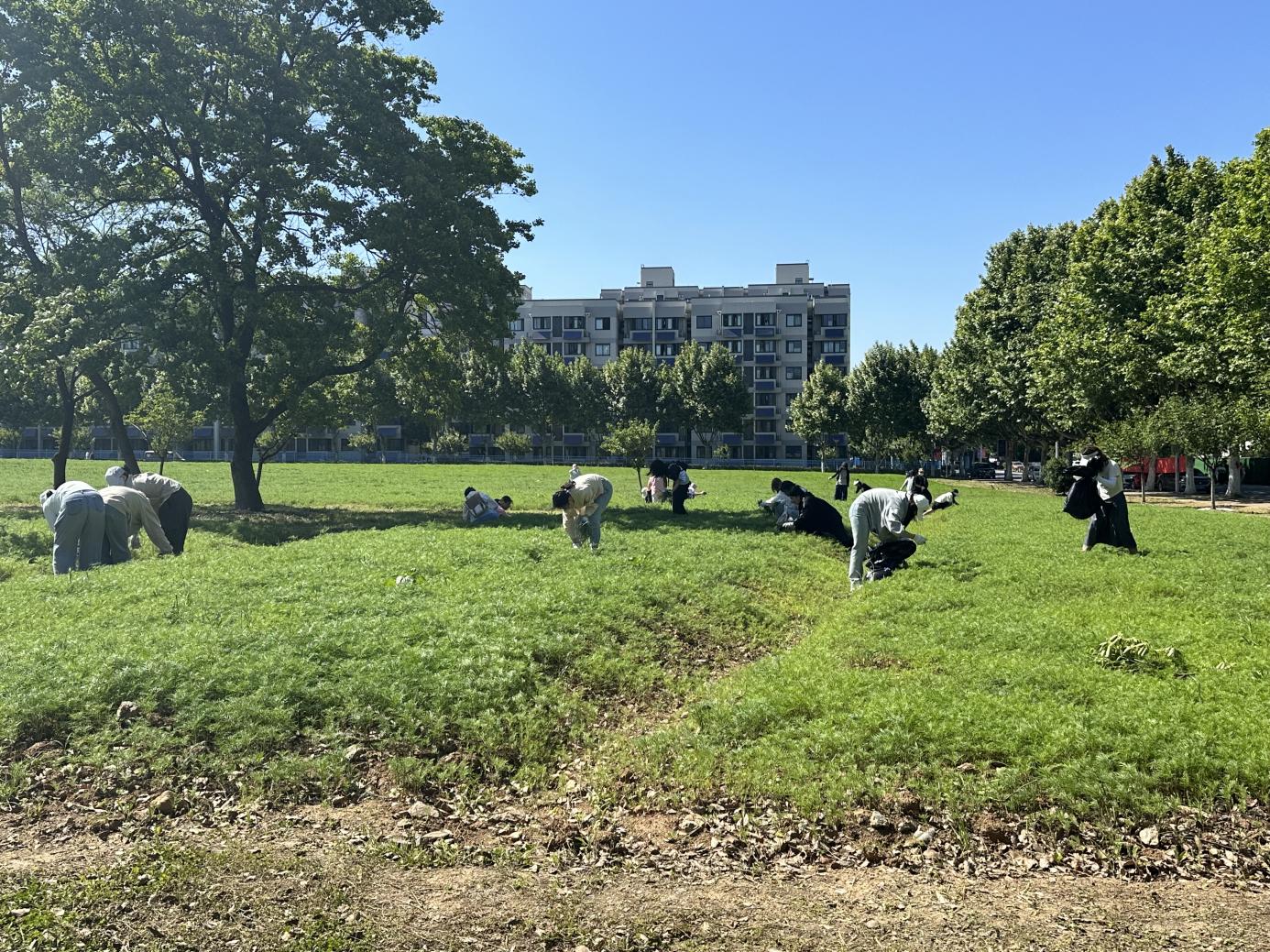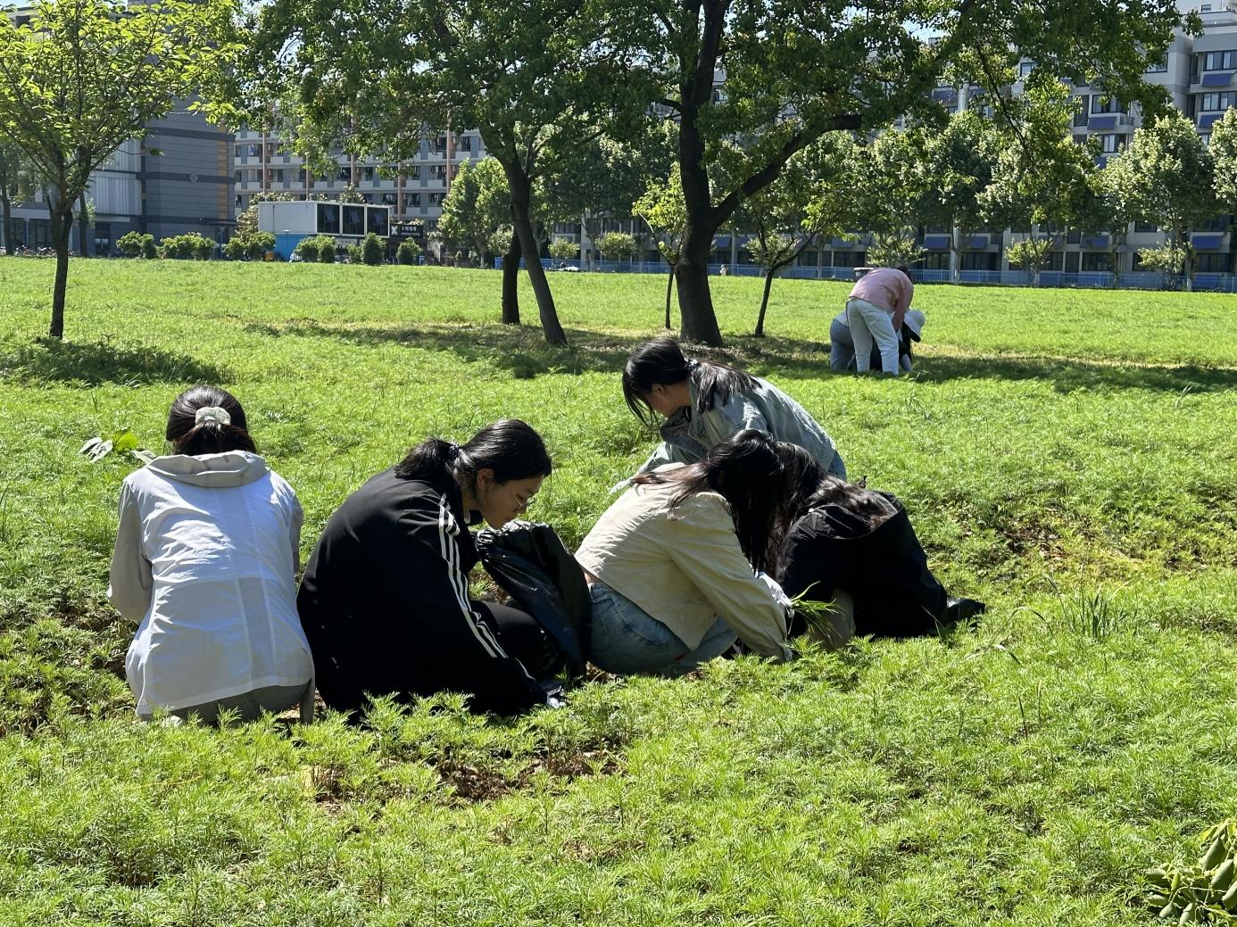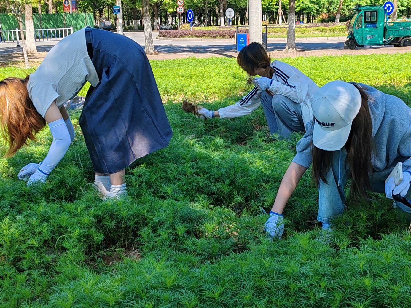 活动开始前,后勤绿化队管理员吕伦伟给各位同学发放了手套和垃圾袋等除草必备用品,并带领同学们学习了辨别花苗和杂草的技巧。活动中,同学们分工明确,一部分负责拔除杂草,另一部分则负责后续的清理与填土工作。初夏的阳光下,经院学子俯身面向土地的身影与青绿色的嫩苗相交,青春与新芽汇就出了一幅富有生命力的画卷。除草后,格桑花幼苗能更充分地汲取营养、茁壮成长,并将在毕业季盛开,这也是学生们以实际劳动表达对即将毕业学生的美好祝福。