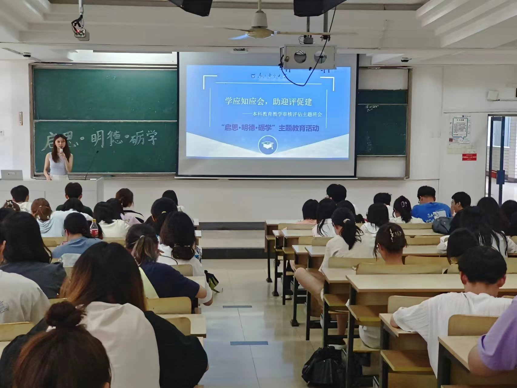 为深入落实立德树人根本任务,全面迎接教育部新一轮本科教育教学审核评估,总结本学期学习工作情况,引领同学们更好地进行期末备考及大三规划,2024年6月12日下午,冰球突破mg正规官网2022级召开“启思·明德·砺学”主题教育大会暨期末年级大会,学院党委副书记兼副院长吴迪应邀出席,全体2022级学生参加,大会由2022级辅导员储宜旭老师主持。