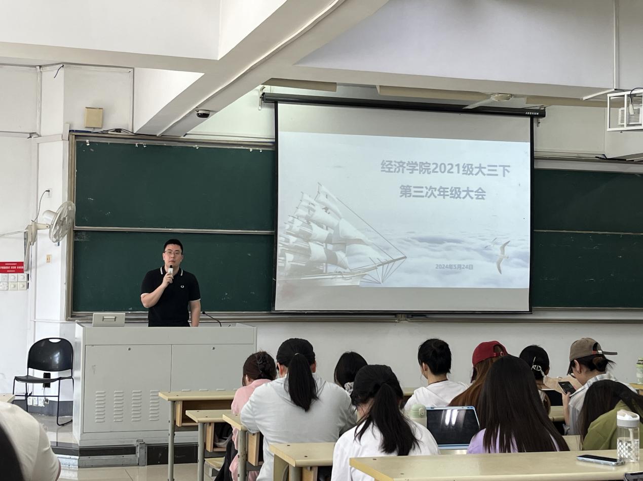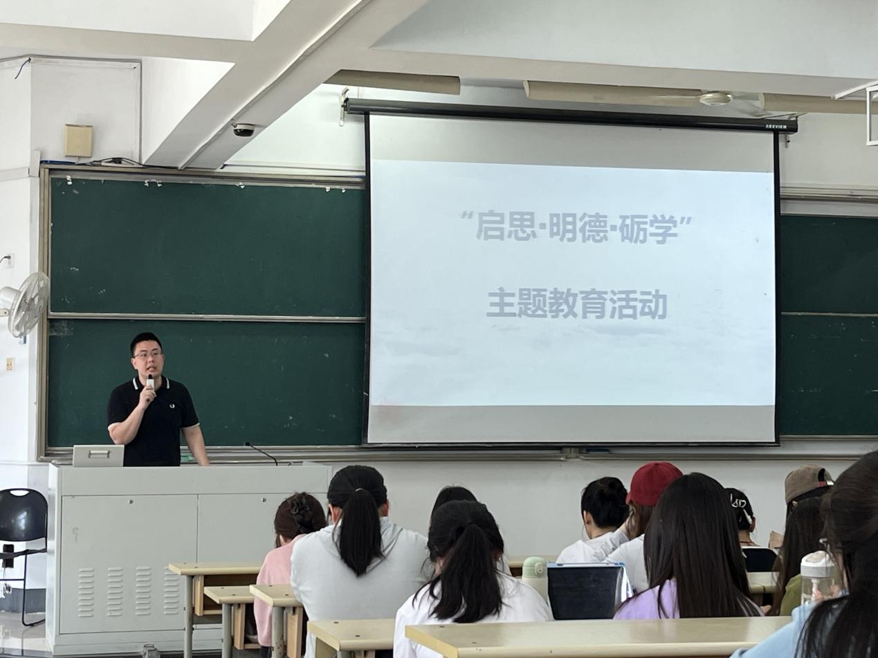 2024年5月24日,冰球突破mg正规官网在教4-101召开了大三下第三次年级大会暨“启思·明德·砺学”主题教育活动。会议由辅导员王珏主持,2021级全体学生参会。