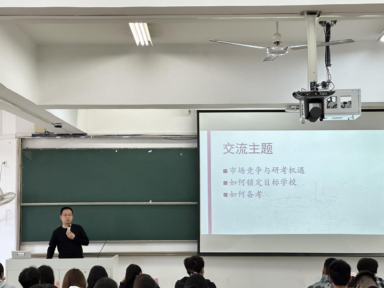 接着,杨院长从市场竞争与考研机遇、如何锁定目标学校、如何备考三方面出发,为同学们进行了详细分析。叮嘱同学们要认真研究所报考院校的招生专业、招录情况等,结合自身实际情况制定针对性的复习策略和复习计划,复习过程中要注重知识框架的搭建和复习状态的调整。