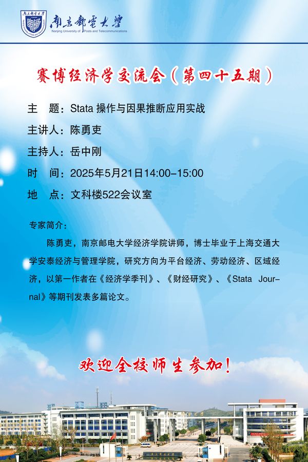 赛博经济学交流会(第四十四期)——Stata 操作与因果推断应用实战