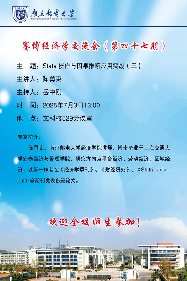 赛博经济学交流会(第四十七期)——Stata 操作与因果推断应用实战(三)