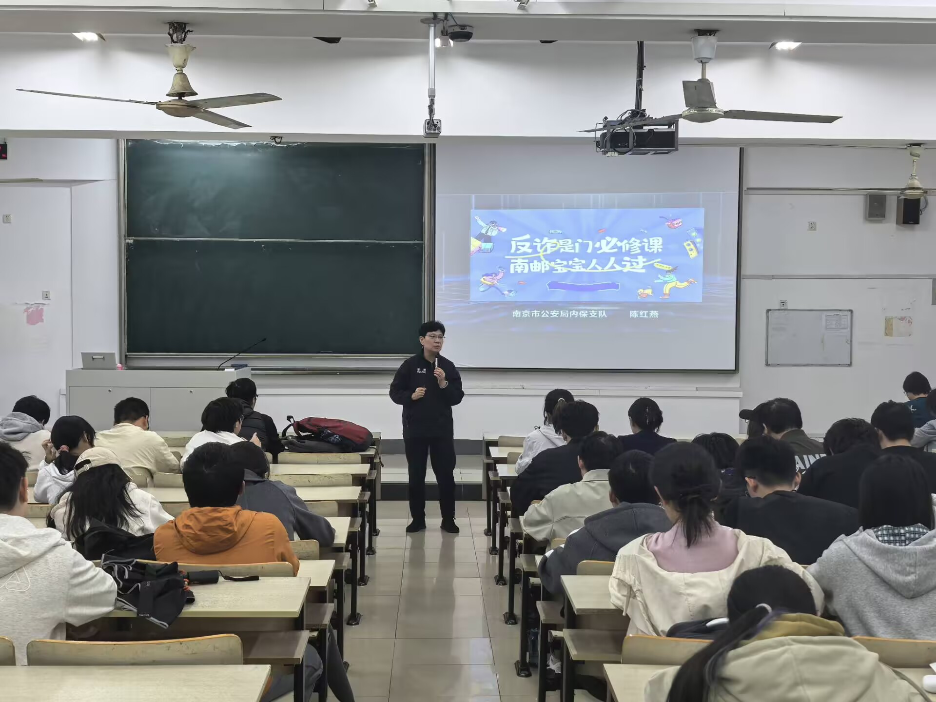 2025年11月6日下午,冰球突破mg正规官网在教2-211举办“反诈是门必修课,南邮宝宝人人过”主题讲座。本次活动特邀南京市公安局内保支队反诈专家、金牌讲师陈红燕警官担任主讲,学院党委副书记、副院长吴迪出席,冰球突破mg正规官网2025级全体本科生参会。