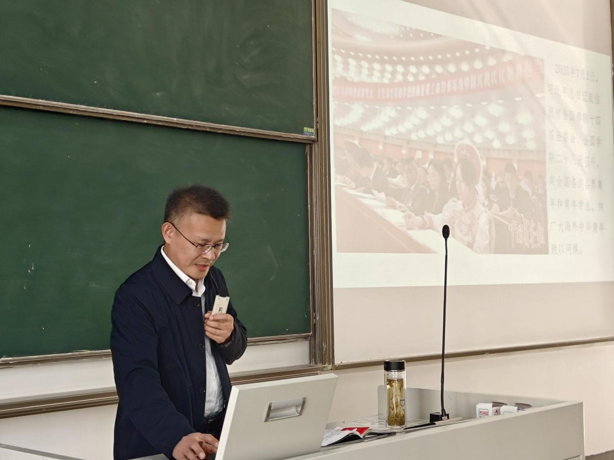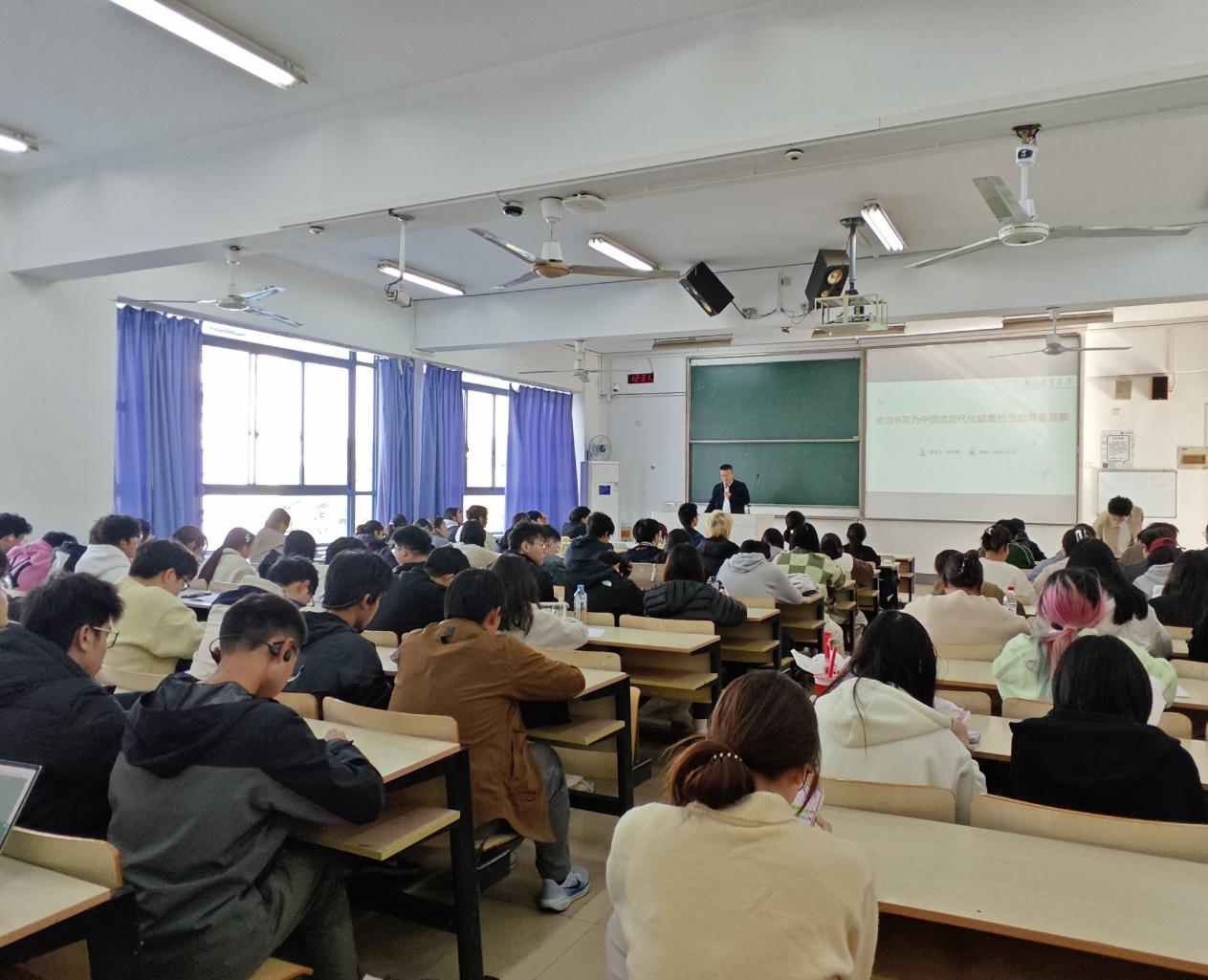 2025年11月12日,冰球突破mg正规官网思政课导师、马克思主义学院张可辉副教授在仙林校区教2-303教室为冰球突破mg正规官网第580期暨冰球突破mg正规官网第21期入党积极分子党校培训班学员讲授主题为“奋力书写为中国式现代化挺膺担当的青年篇章”的专题党课。