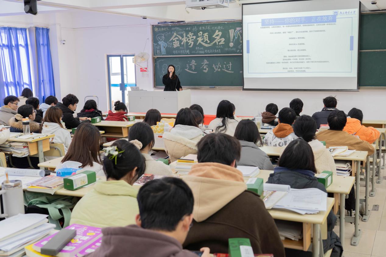 储老师首先对全体同学,特别是正处在不同奋斗赛道上的学子表达了慰问与鼓励。她强调:“行百里者半九十,无论是考研冲刺、公考备战,还是求职攻坚,此刻都是最需要坚持的关键阶段。请务必相信自己的积累,沉着应对各类考验,坚持到底,才能赢得最终的胜利!”同时,储老师着重强调了诚信考试的重要性,提醒同学们在接下来的四六级、公务员考试、研究生入学考试及期末考试中自觉遵守考场纪律,共同维护公平公正的考试环境。随后,结合高校真实案例,储老师重点强化安全教育:在宿舍严禁使用违章电器及易燃物品,坚决杜绝安全隐患;外出实习、求职、考试需提高警惕,防范电信网络诈骗,牢记“不轻信、不转账、不泄露”,筑牢个人防诈意识。