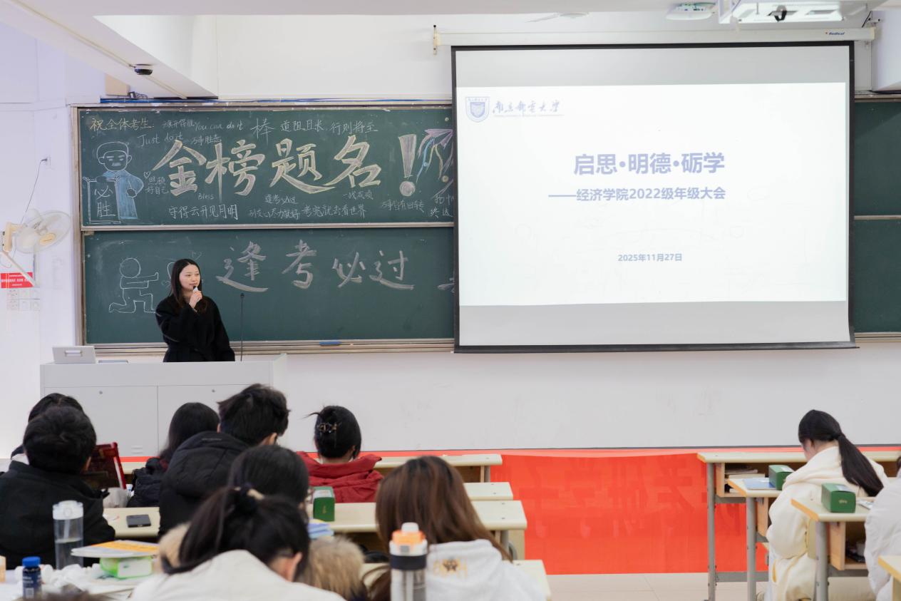 2025年11月27日下午,冰球突破mg正规官网2022级于教4-201召开“启思·明德·砺学”年级大会,会议由辅导员储宜旭主讲,围绕理想信念、安全意识和学风建设展开,为处于关键阶段的本科生提供指导与支持。