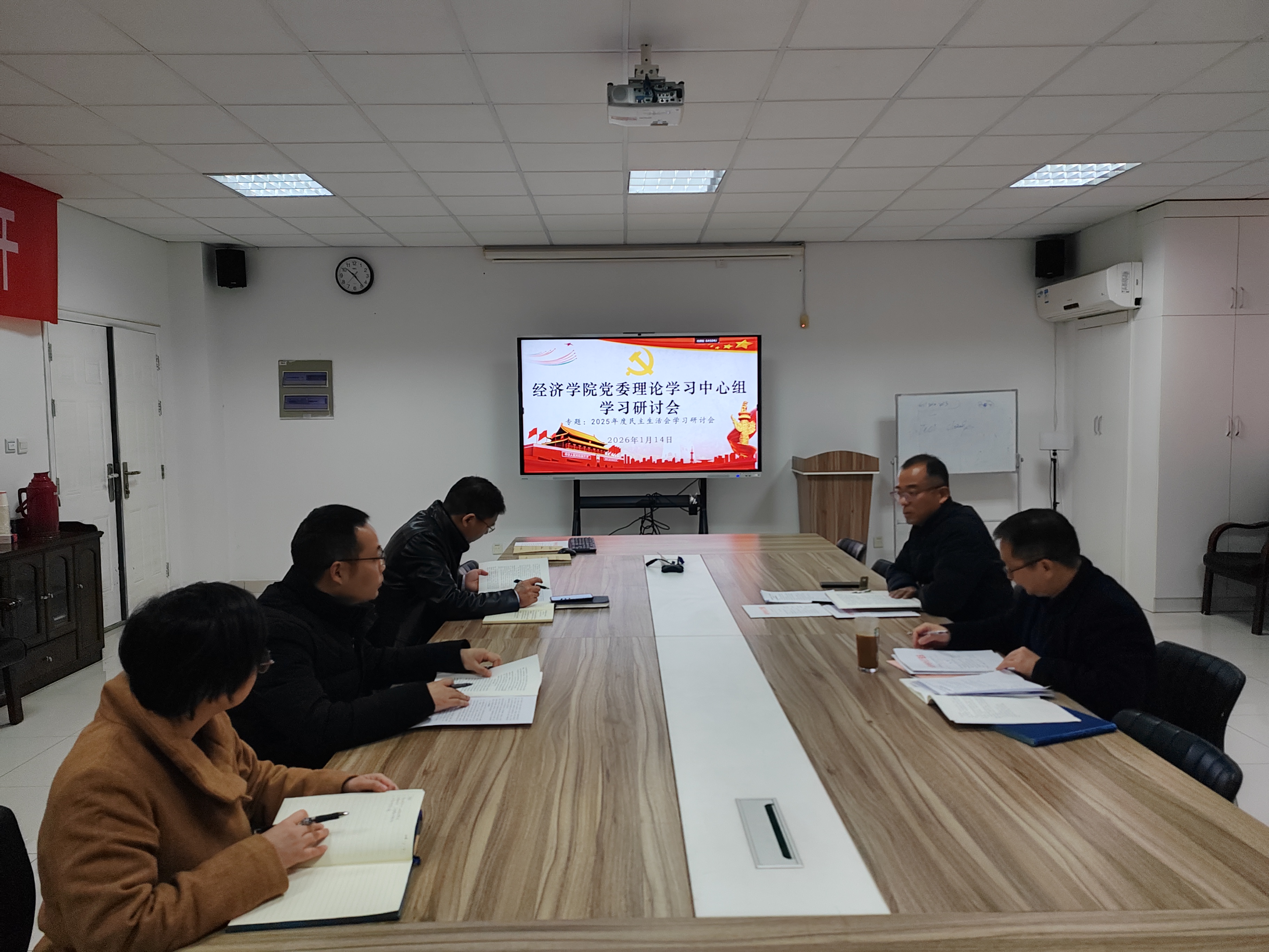 根据《冰球突破mg正规官网2025年度领导班子民主生活会实施方案》工作安排,2026年1月14日上午,冰球突破mg正规官网党委理论学习中心组在文科楼529会议室召开了2025年度民主生活会专题学习研讨会。会前,与会同志自学了《习近平谈治国理政》第五卷、党章和《中国共产党纪律处分条例》等内容。会议由学院党委书记、党委理论学习中心组组长刘挺同志主持。