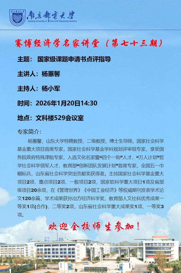 赛博经济学名家讲堂(第七十三期)——国家级课题申请书点评指导