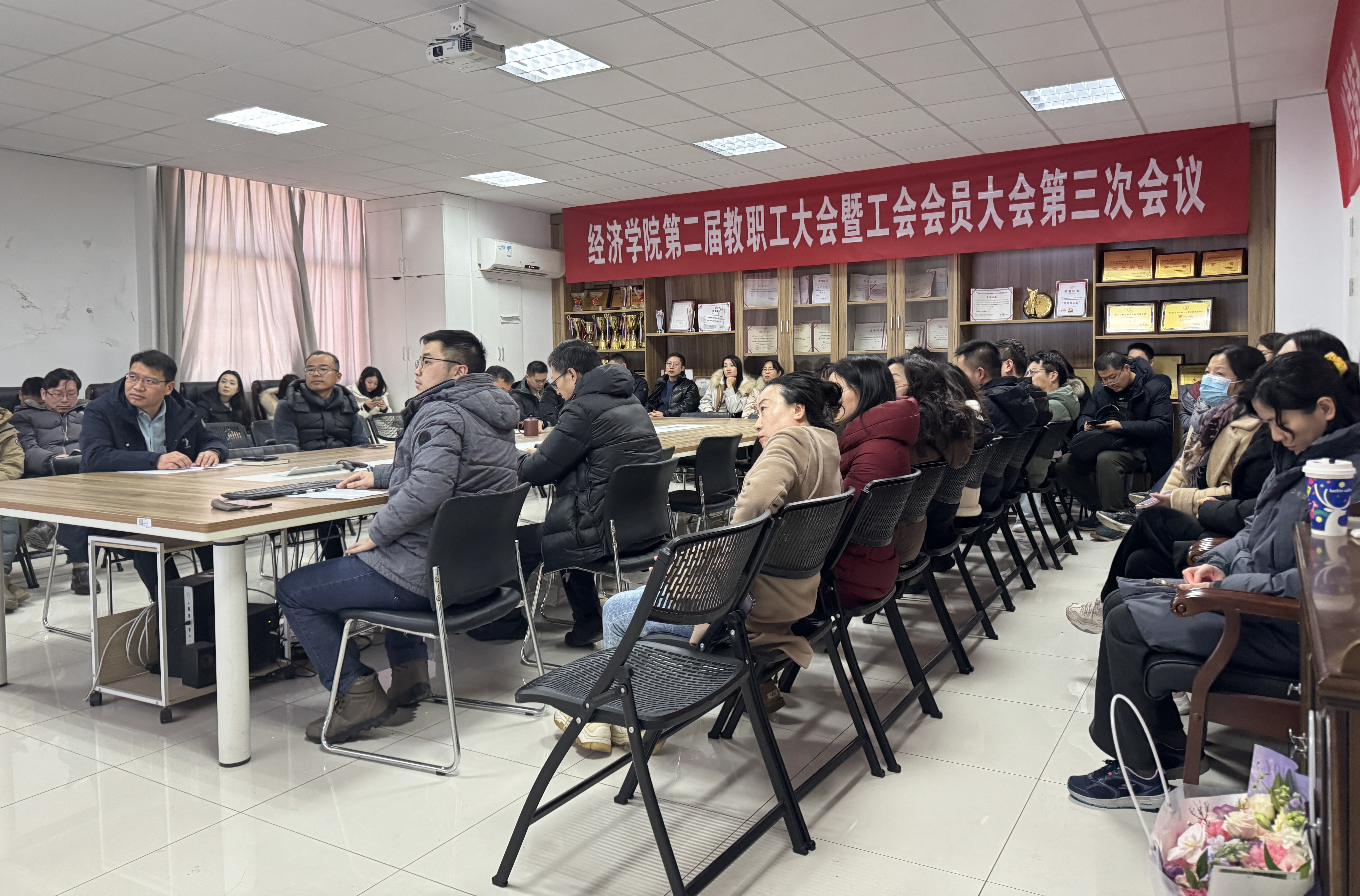 2026年1月22日下午,冰球突破mg正规官网于文科楼529会议室召开第二届教职工大会暨工会会员第三次会议。会议由学院党委副书记、分工会主席吴迪主持,全体教职工出席。