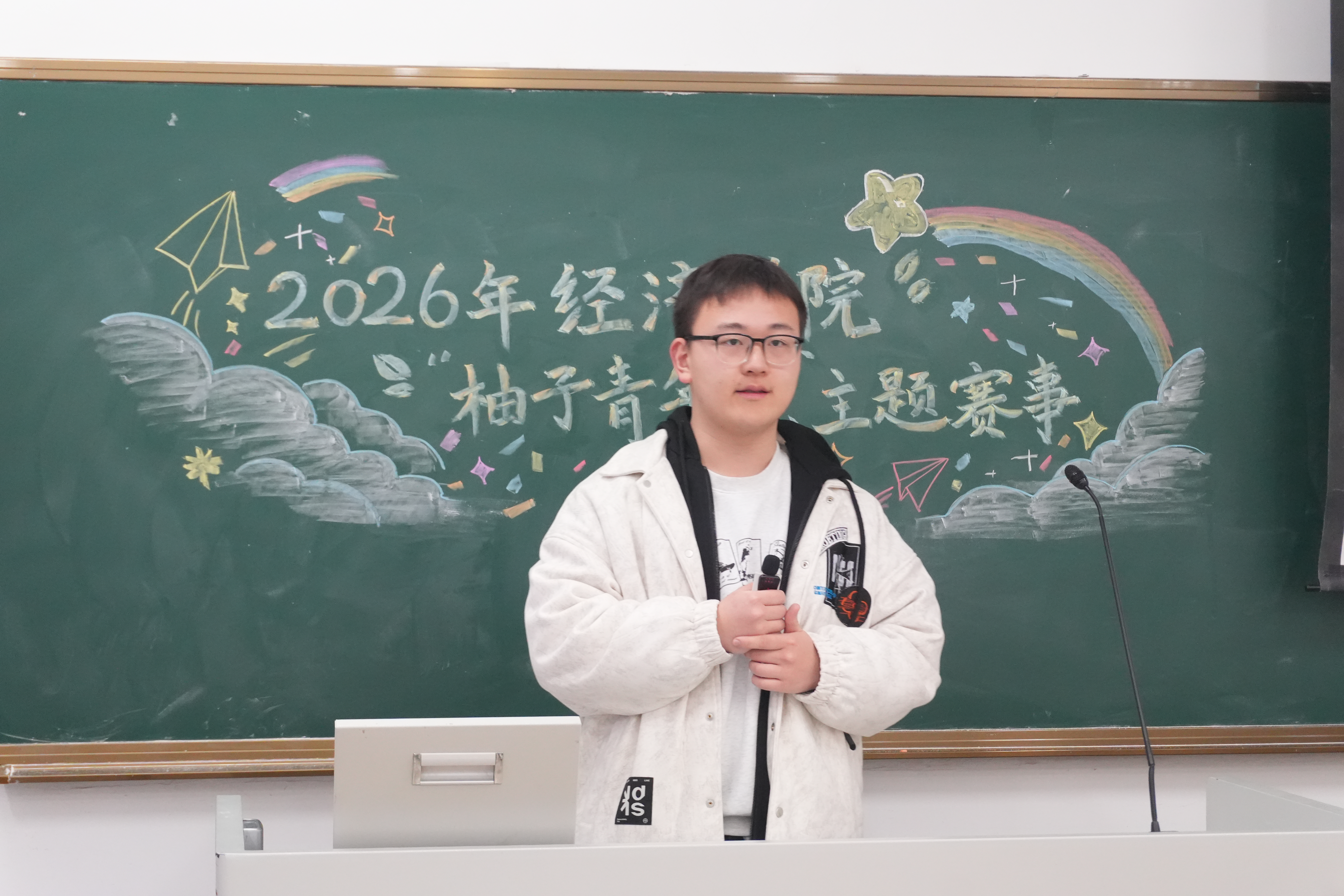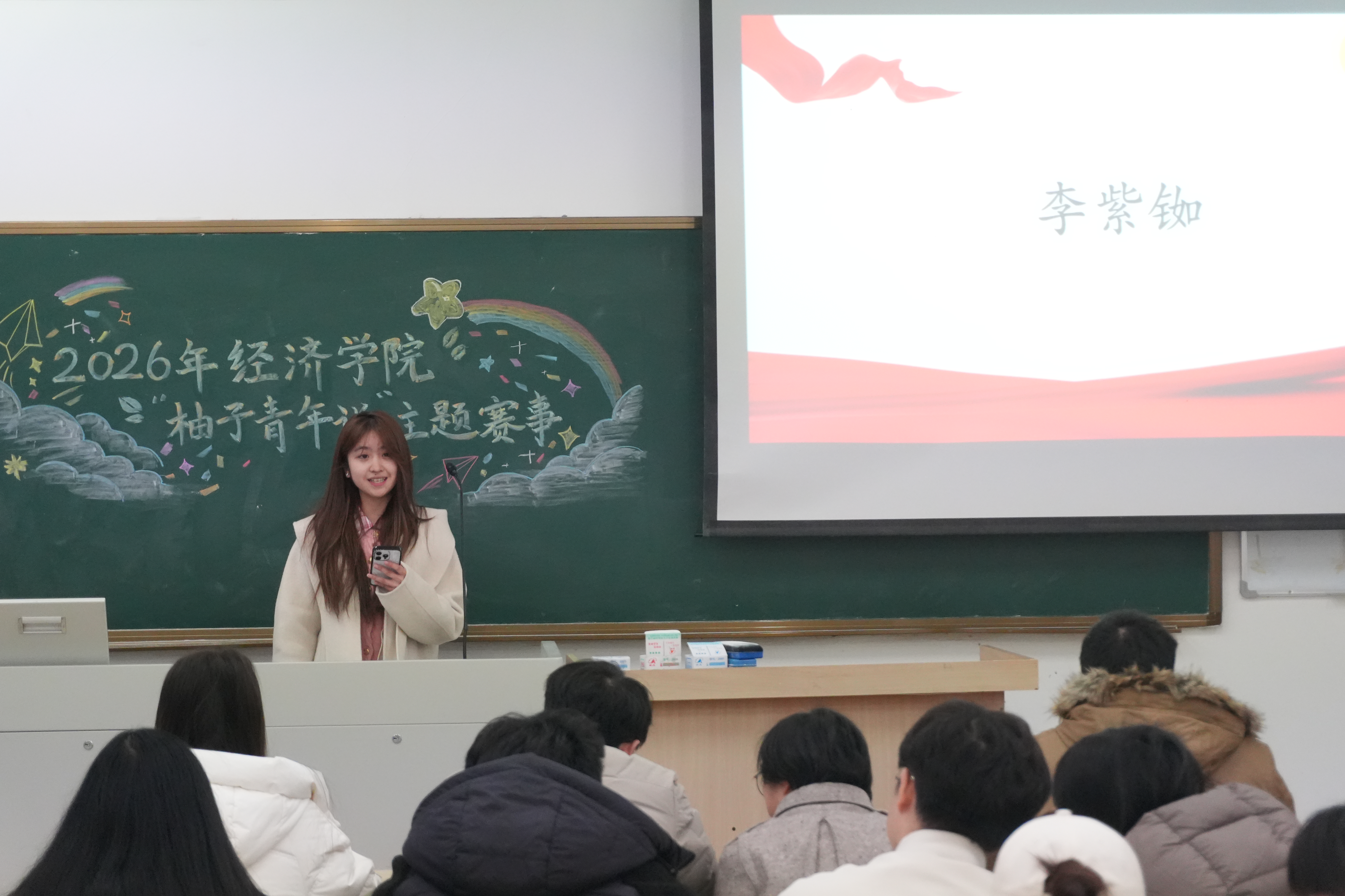 为深入贯彻习近平总书记对广大青年的殷切期望,在党的二十大精神和党的二十届四中全会精神的感召下,冰球突破mg正规官网冰球突破mg正规官网于3月11日下午在仙林校区教2-104举办了2026年“柚子青年说”主题赛事。本次比赛邀请了冰球突破mg正规官网党委副书记、副院长吴迪老师,分团委书记尤波老师,2025级本科生辅导员王珏老师,冰球突破mg正规官网青年学习社主席团成员,以及具备丰富主持演讲经验的唐婉怡同学共同担任评委。